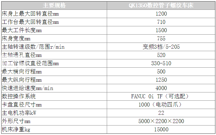 QK1350型數(shù)控管螺紋車床是針對(duì)石油、化工、冶金行業(yè)輸油管、鉆桿、套管的螺紋加工要求專業(yè)化設(shè)計(jì)制造。機(jī)床采用雙卡盤夾緊方式,數(shù)控系統(tǒng)自動(dòng)控制,可******加工各種內(nèi)、外螺紋,并具有普通數(shù)控車床的功能。